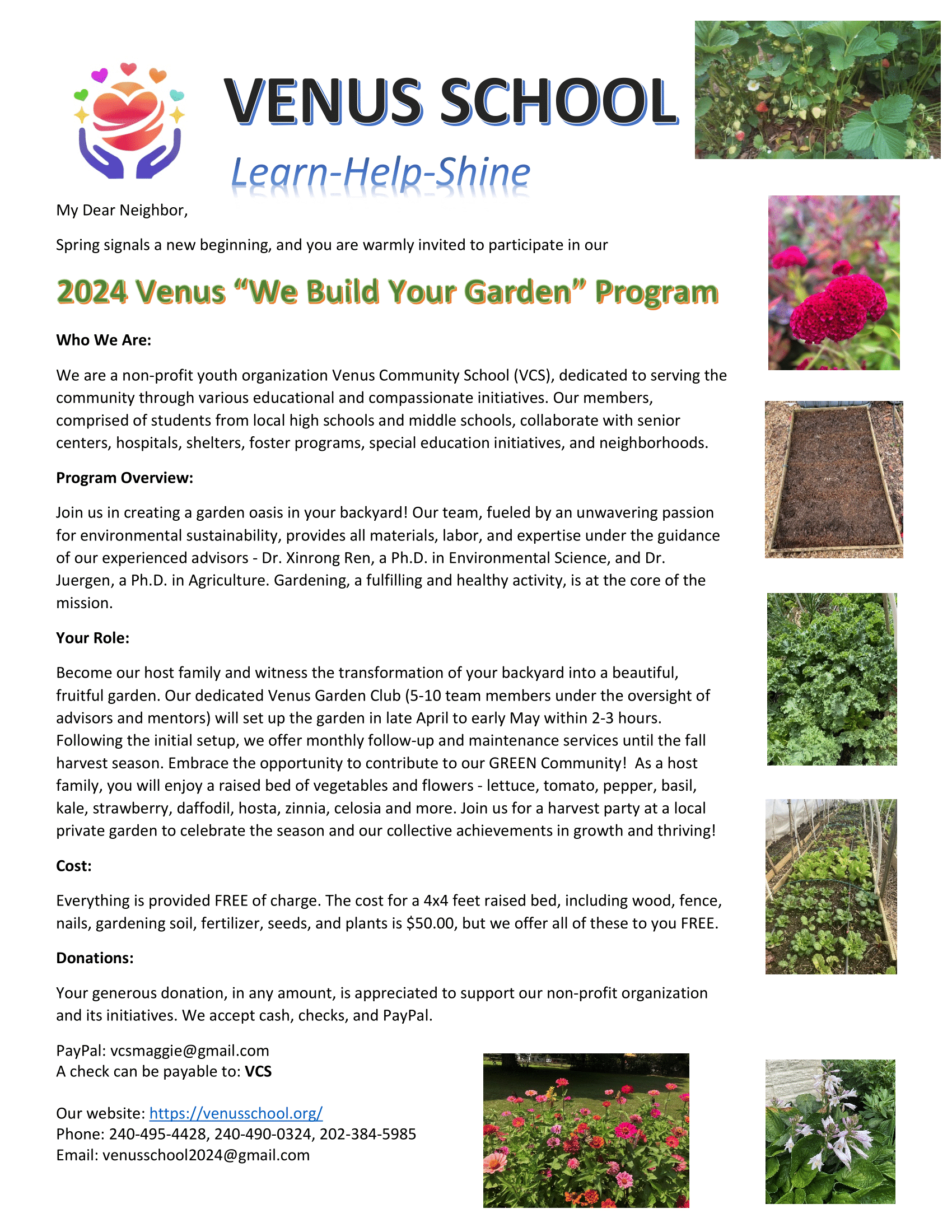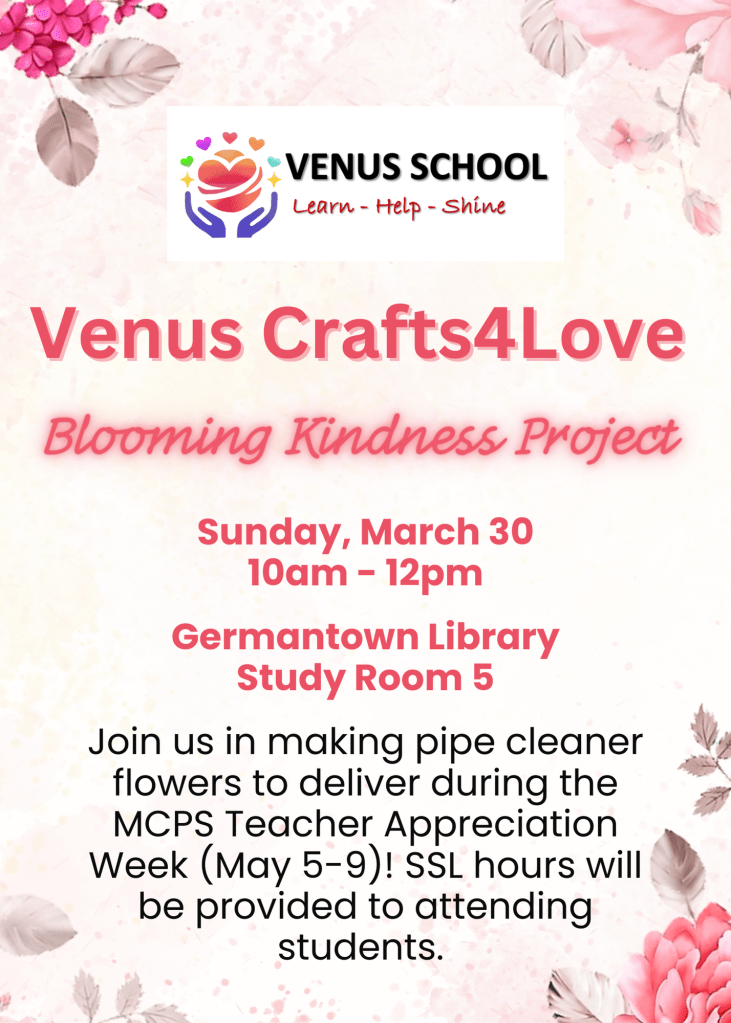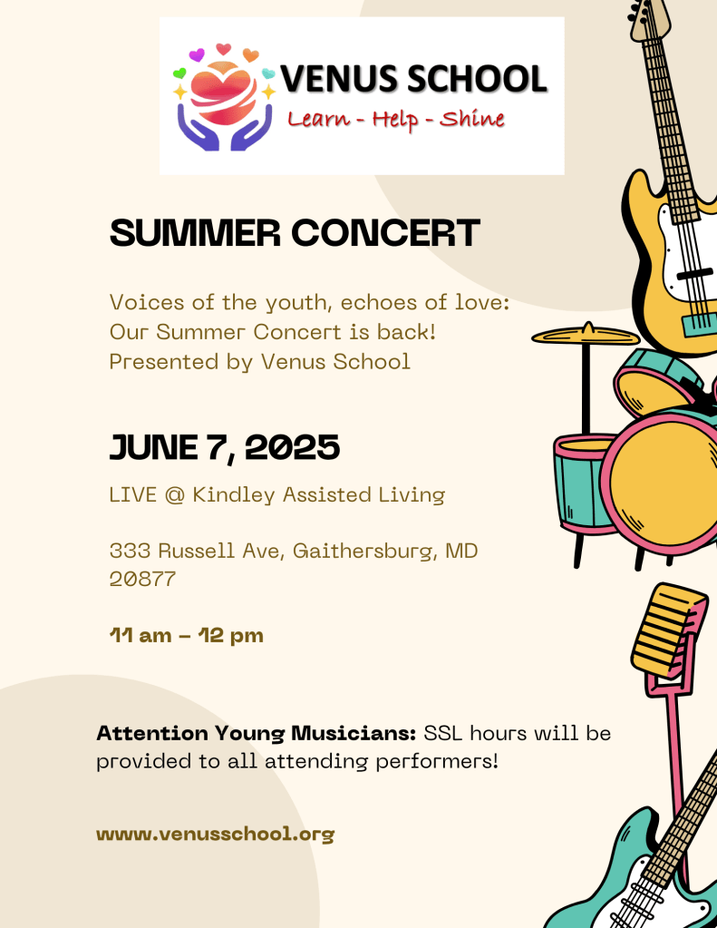 Venus School is a 501(c)(3) youth-driven, non-profit organization for future leaders to serve the community. Originally registered in Maryland in 2013 as the Venus Chinese School, now it has been rebuilt into the Venus Community School in the DMV area. Through our various clubs, initiatives, and partnerships, we provide a platform for youth develop leadership skills, promote collaboration, and make a meaningful impact within their communities.